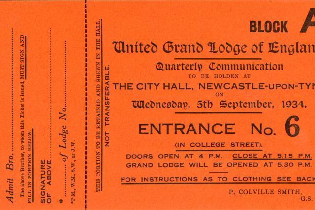 After the Liverpool meeting in 1923, the United Grand Lodge held another four September meetings outside London; at Birmingham in 1928, Newcastle in 1934, Manchester in 1935 and Leeds in 1937. When the idea of these meetings was first proposed some London members of Grand Lodge had suggested they would be poorly attended because no one would want to travel. It proved to be the opposite. The attendance by Provincial members was much higher, with 88% of the 2209 members at the Liverpool meeting being Provincial freemasons in contrast to the 14% of the 765 members who attended the London meeting in September 1922. These meetings were also taking place when freemasonry was going through a growth periods, with membership increasing after the First World War. The old Victorian Freemasons’ Hall had a relatively small capacity and even the new Hall being built only had a capacity of about 1500. The five Provincial meetings were all held in large venues, with the greatest number attending Quarterly Communications at Manchester’s Free Trade Hall in 1935.