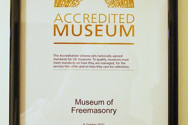We first achieved accredited status in 2009 and some other masonic museums around the UK have likewise achieved this accolade. These are the Kent Museum of Freemasonry, Warrington Museum of Freemasonry and Worcester Masonic Library and Museum.