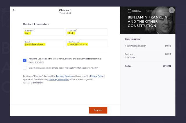 Some of our online events use Eventbrite to issue tickets. You won't have to sign in to Eventbrite. Just follow the instructions below.